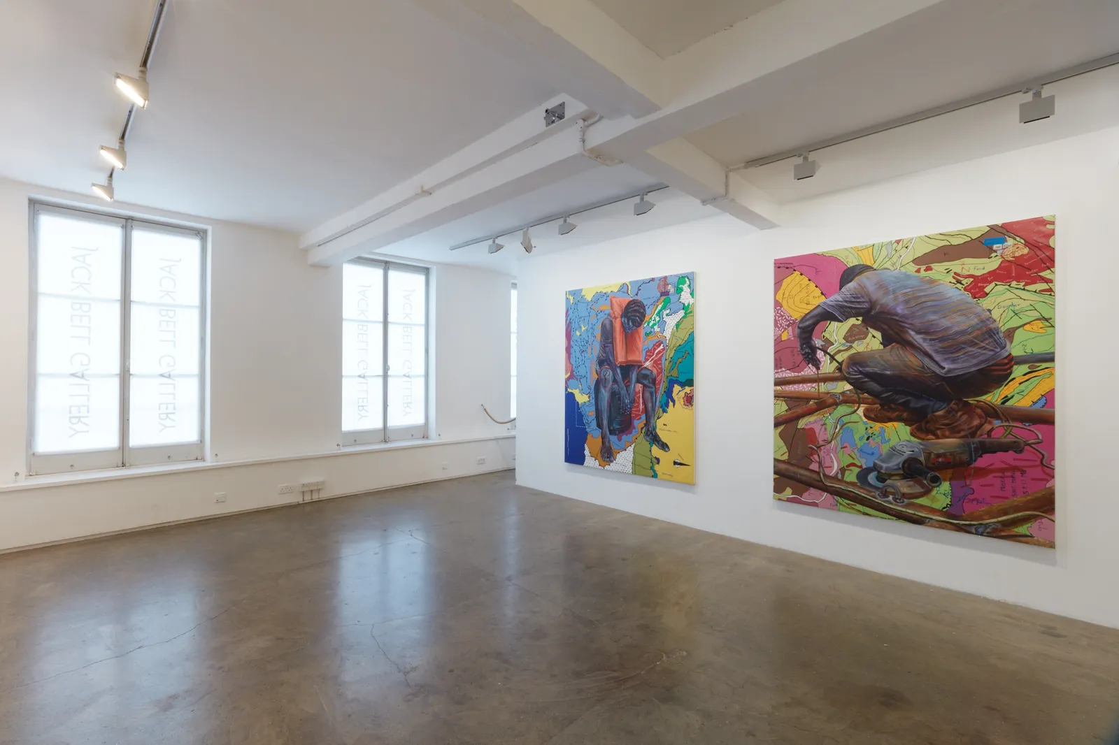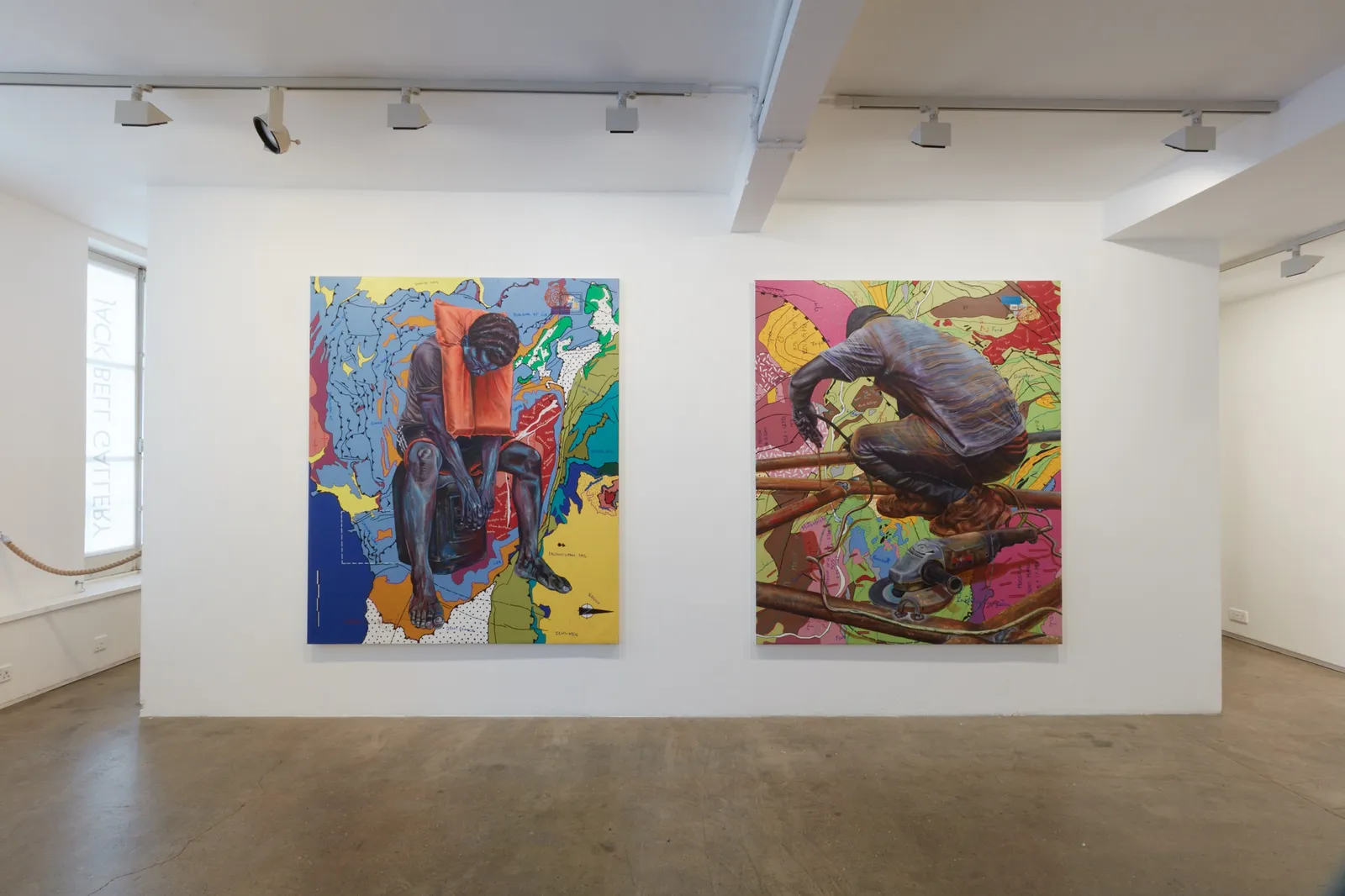 Jack Bell Gallery is pleased to present a new body of paintings on canvas by contemporary artist Jean David Nkot. In his third solo exhibition with the gallery, Nkot continues to address themes surrounding trans-African migration. His works combine detailed portraits with layers of complex cartographic information.