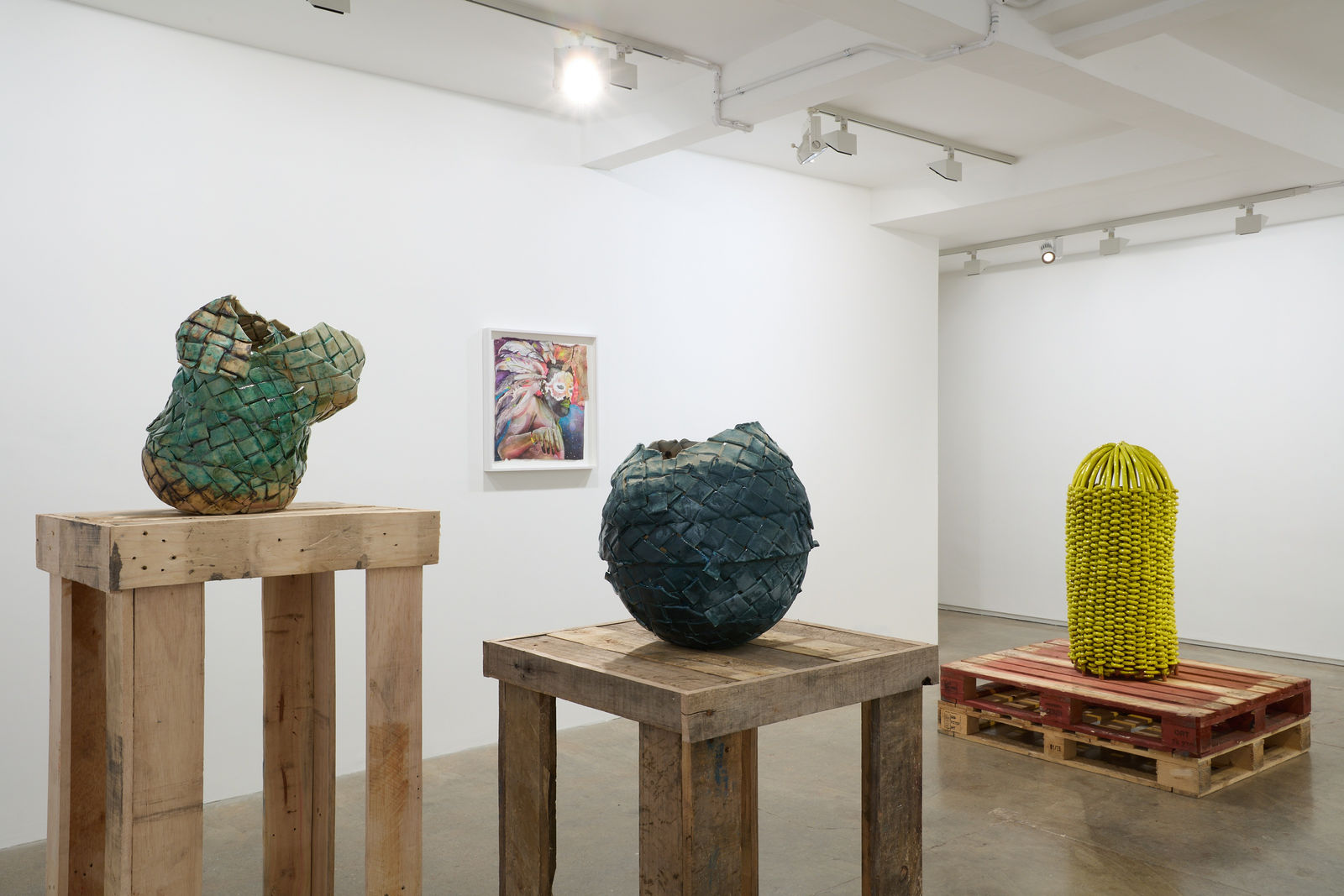 Working from her studio in New York state, Anina Major examines questions of nostalgia and identity via the Bahamian tradition of straw weaving, a craft practiced by female members of her own family, particularly her grandmother. Undervalued within Bahamian culture, where straw baskets and figures are sold mainly to tourists, Major’s sculptures are a means to preserve and honour her family history and that of the enslaved peoples who brought the technique of weaving from Africa to the Caribbean. As many inhabitants from island nations are forced to migrate to find work and opportunities, the creation of vessels is also a way for the artist to both connect with home while living elsewhere, and to foster a sense of belonging within her new surroundings. Major holds an MFA from Rhode Island School of Design and is the recipient of numerous awards and residencies, including the Armory Show 2024 Pommery Prize, the 2023 Joan Mitchell Fellowship, and the EKWC, Centre-of-Excellence for Ceramics international artist-in-residency. Her work is included in the permanent collection of The Smithsonian National Museum of African American History and Culture, Washington DC; the National Art Gallery of The Bahamas; the Museum of Fine Arts, Boston; Los Angeles County Museum of Art; Carnegie Museum of Art; and Perez Art Museum Miami, among others.