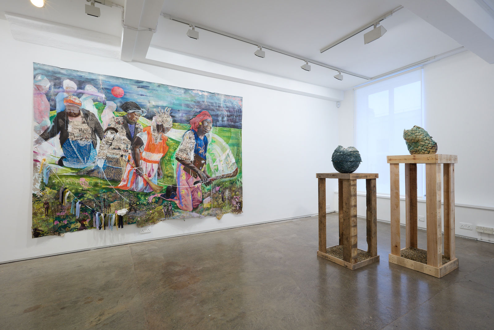Drawing on their separate, formative years in Nassau, Bahamas and more recent roots in the USA, Major and Munroe’s work is infused with ideas of home, migration, identity and heritage; exploring what it means to belong and how making can carry stories forward, honoring ancestral and cultural knowledge in new forms. Tapping into a wealth of research spanning first-hand experience of tribal ceremonies to personal, family artefacts and public archives, the work shares an interest in kinship and reclaiming the fractured narratives underpinning the Black Caribbean and African experience. Although specialising in different mediums, both artists range freely within their chosen materials, expanding the boundaries of painting, sculpture and installation, claiming space on their own terms.