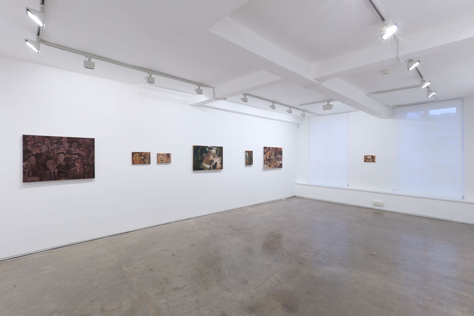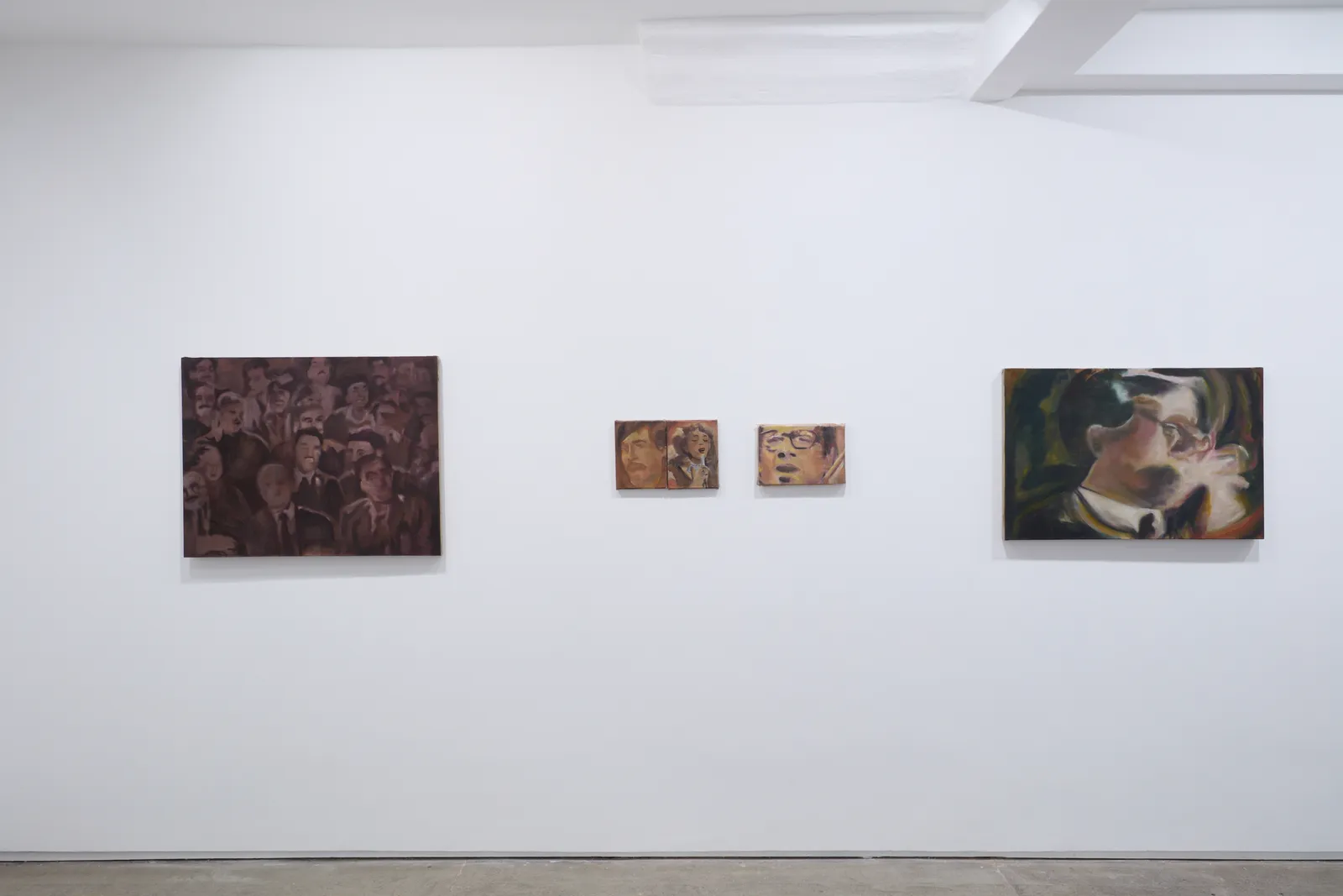 As the series was being developed, tension between India and Pakistan nearly erupted in nuclear war. An atmosphere of hysteria, fear and paranoia can be detected in the paintings, with every gesture seemingly under scrutiny, faces frozen or unravelling and the palette taking on toxic hues. The works speak together of this feverish contest of patriotism whose shared language calls into question the legacy of a colonial border.
