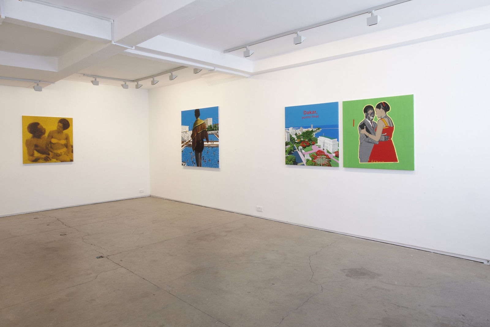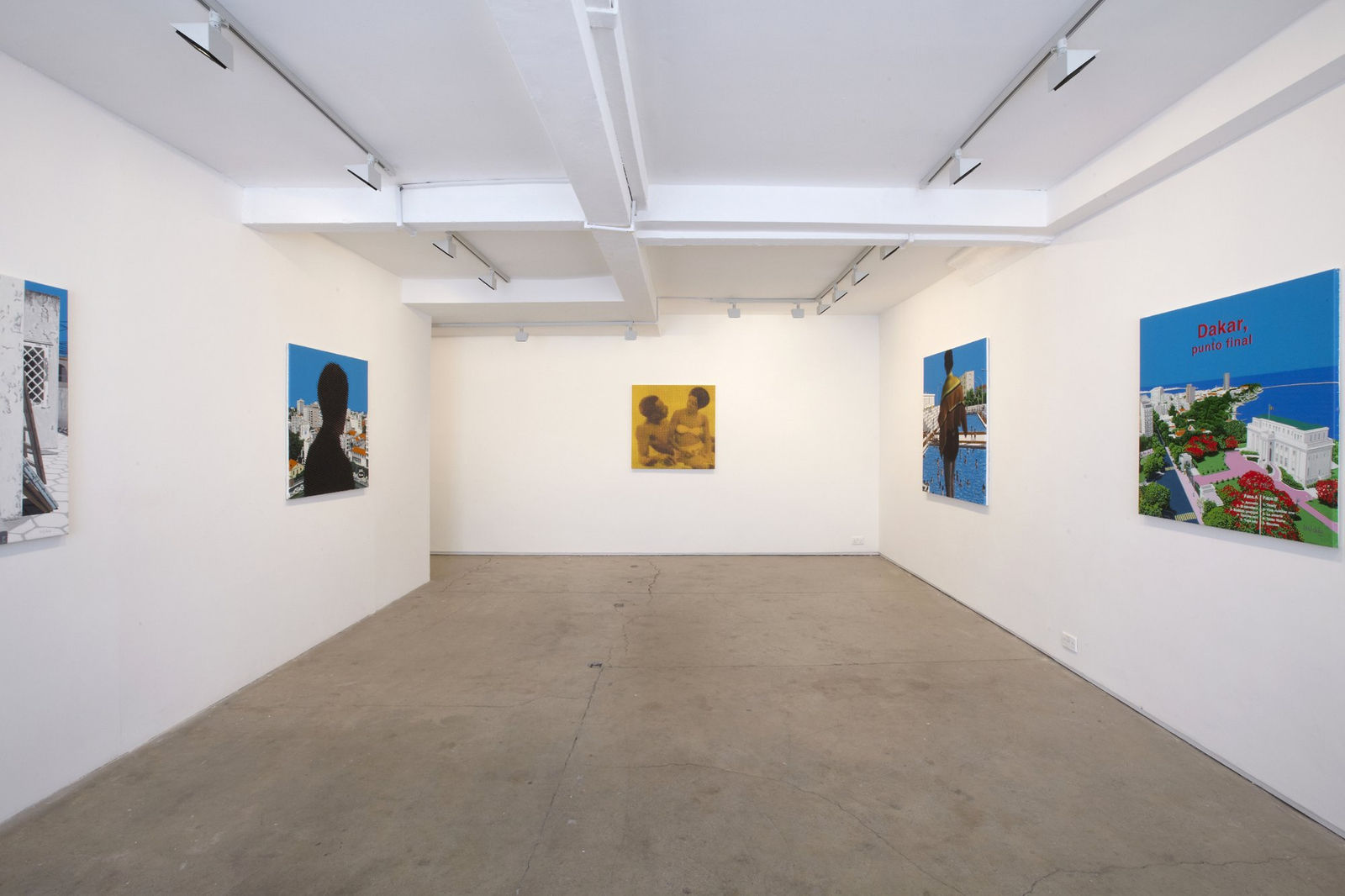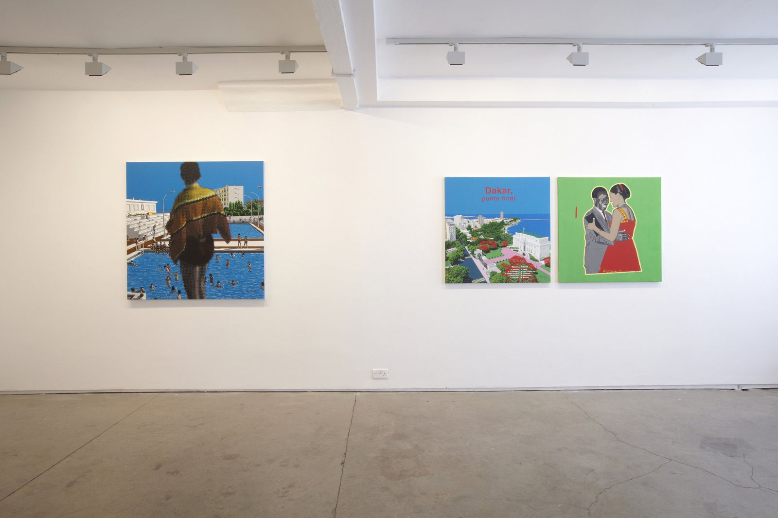 In 'Dakar, punto final', the words and letters painted with such great precision seem to change and lose their meaning. Michea's work becomes at the same time figurative and abstract. Although primarily African, his paintings evoke the Los Angeles shop fronts and Californian petrol stations of Ed Ruscha. Recalling early work by David Hockney, architectural shapes and heavy blocks of primary colour draw attention to the surface of the canvas. Stark shadows cast from the midday sun create geometrical forms, graphics stronger than the subject itself.