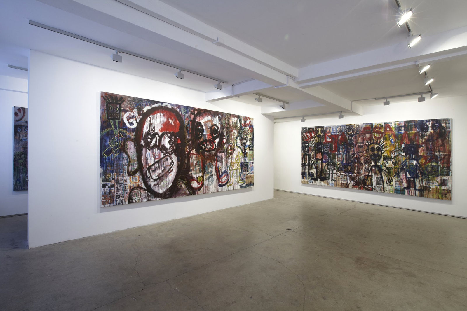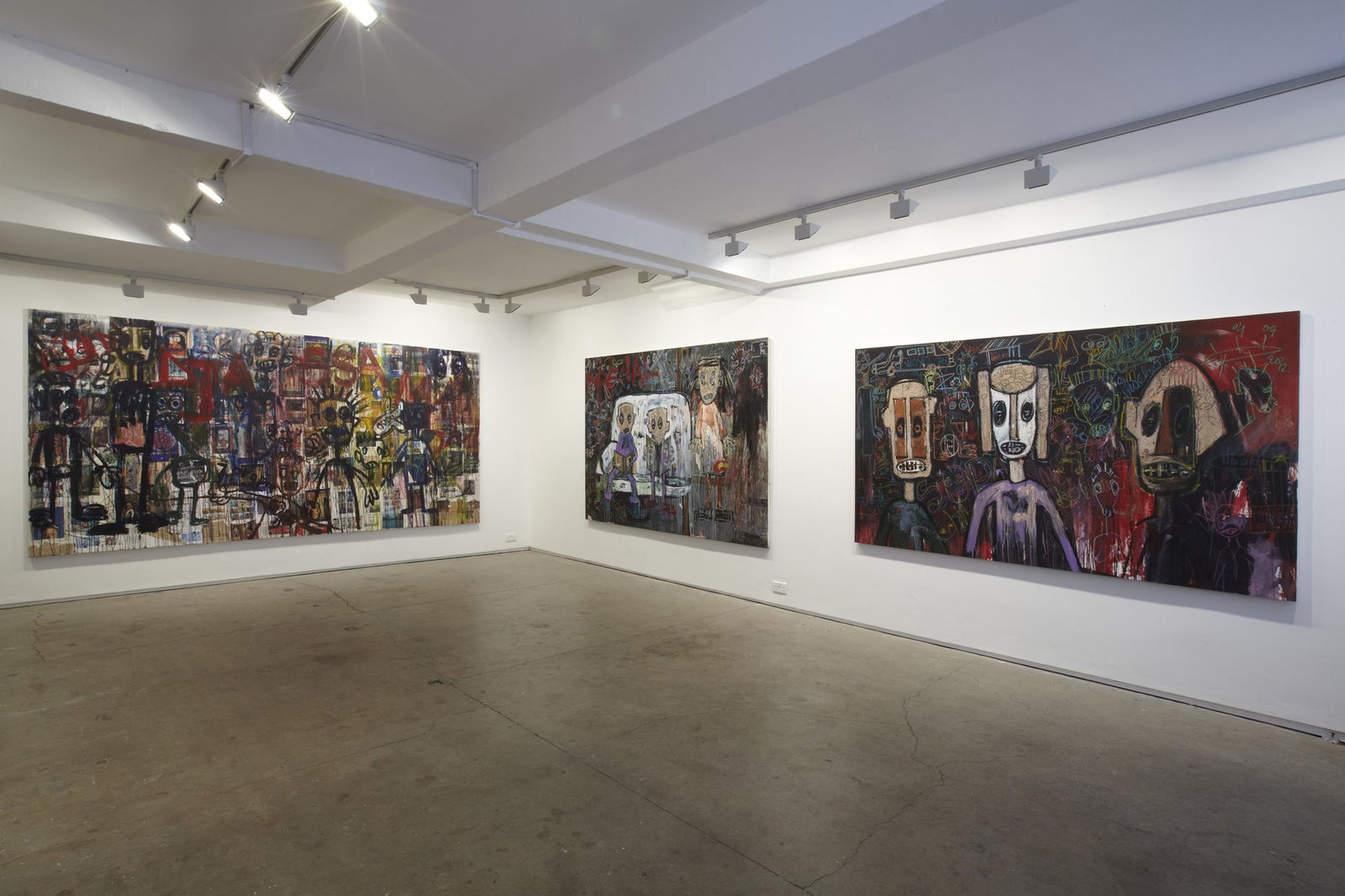 Aboudia is noted for his large-scale, heavily layered, brutally energetic paintings that combine an innocence and spontaneity with the portrayal of a dark interior world. Since 2011, his urban landscapes have been haunted by trauma; armed soldiers, ominous skulls and a populace hemmed in by violence and danger. This new series continues to grapple with the hardships of life on the streets and the social inequalities of downtown Abidjan. Often claustrophobic and oppressive, his painting achieves a careful balance between pathos and aggression. While the vitality of his style recalls Basquiat, the darker undercurrents and themes describe a battlefield straight out of Goya.