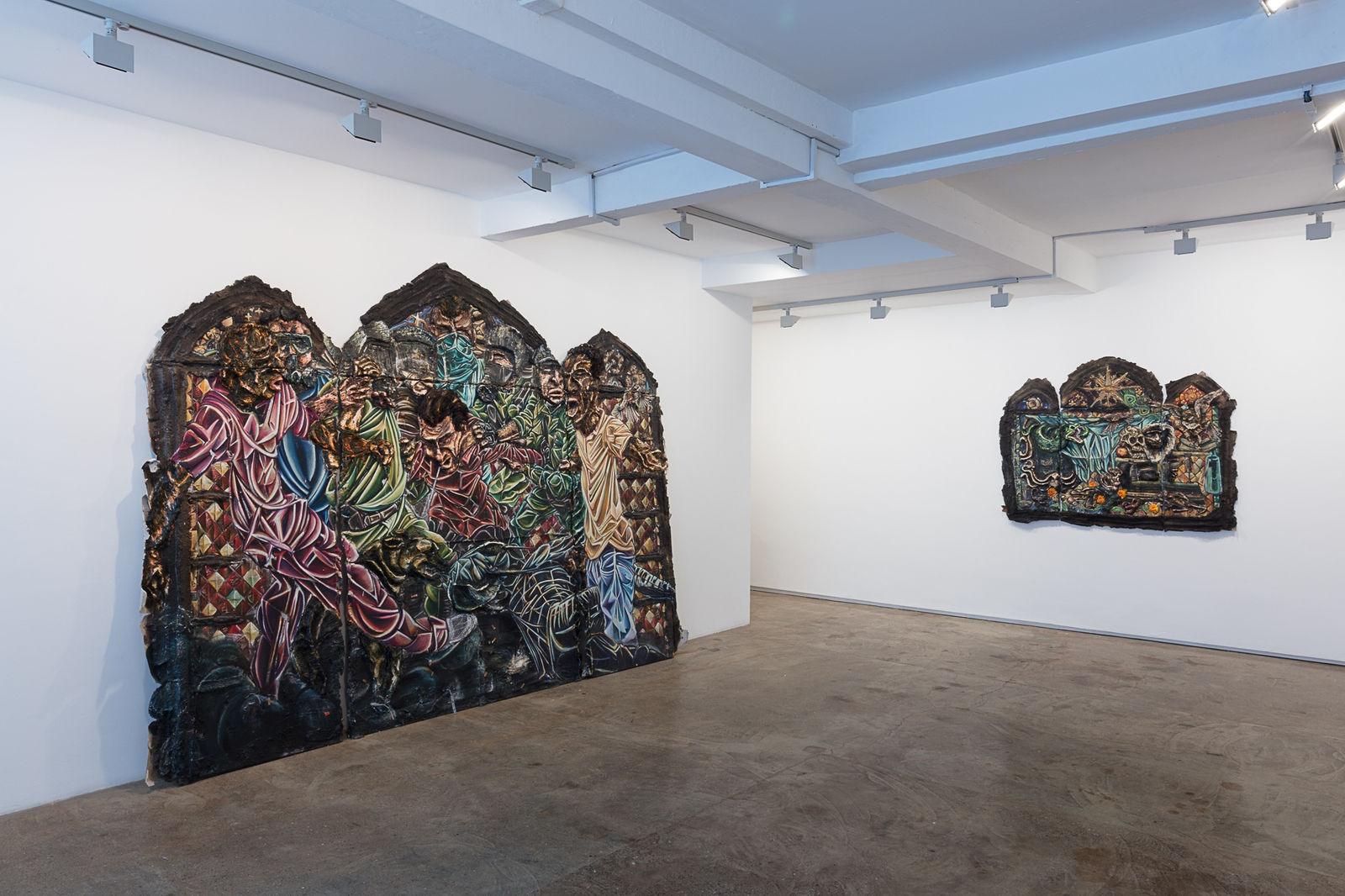 Jack Bell Gallery is pleased to present a solo exhibition of paintings by contemporary artist Raquel van Haver. In her third show with the gallery, the artist presents two new mural scale paintings along with a smaller still life. She works on burlap, often combining oil paint, charcoal, resin, hair, paper, tar and ash in heavily textured compositions.
