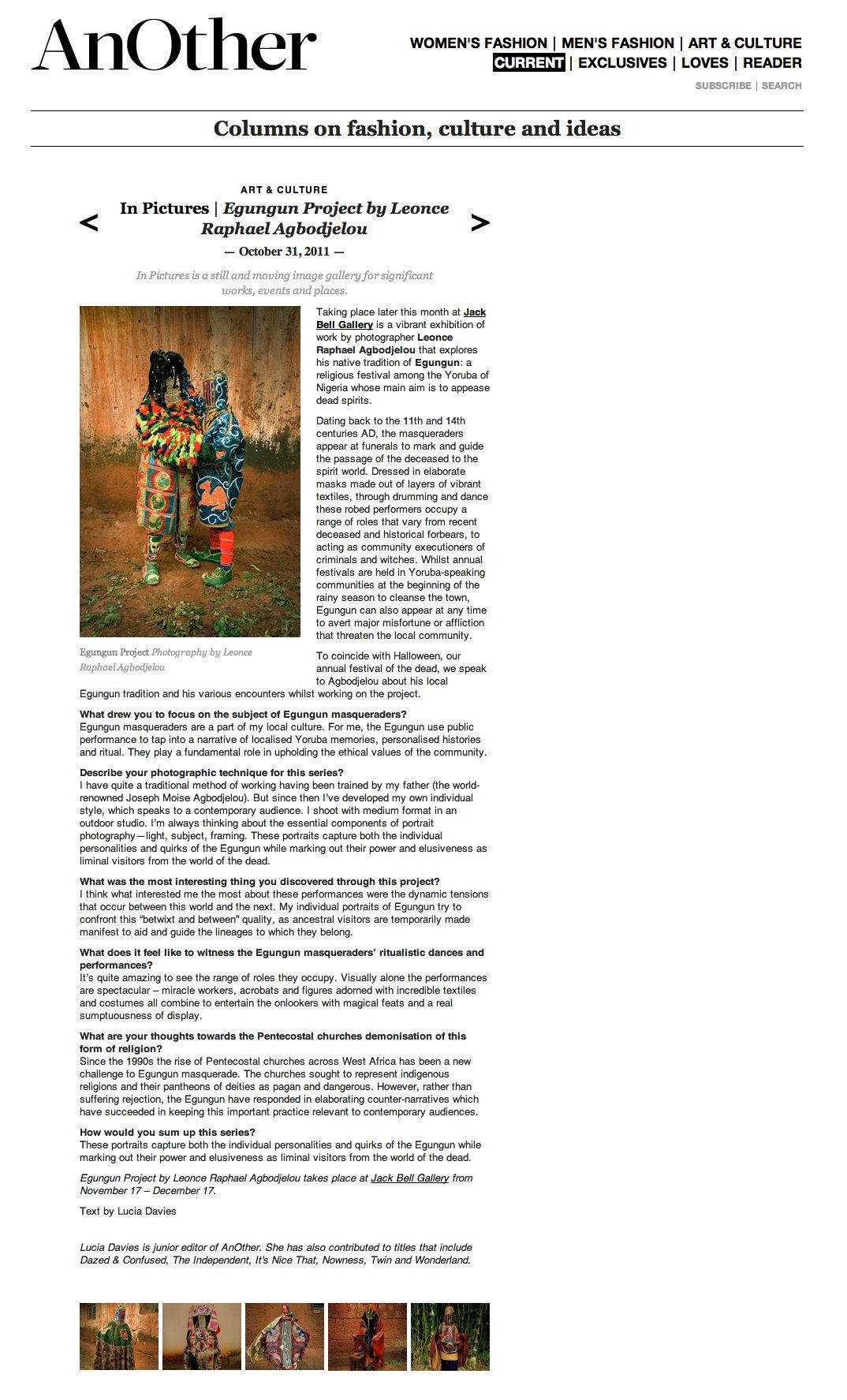 'Egungun Project by Leonce Raphael Agbodjelou', Lucia Davies, 31 October 2011