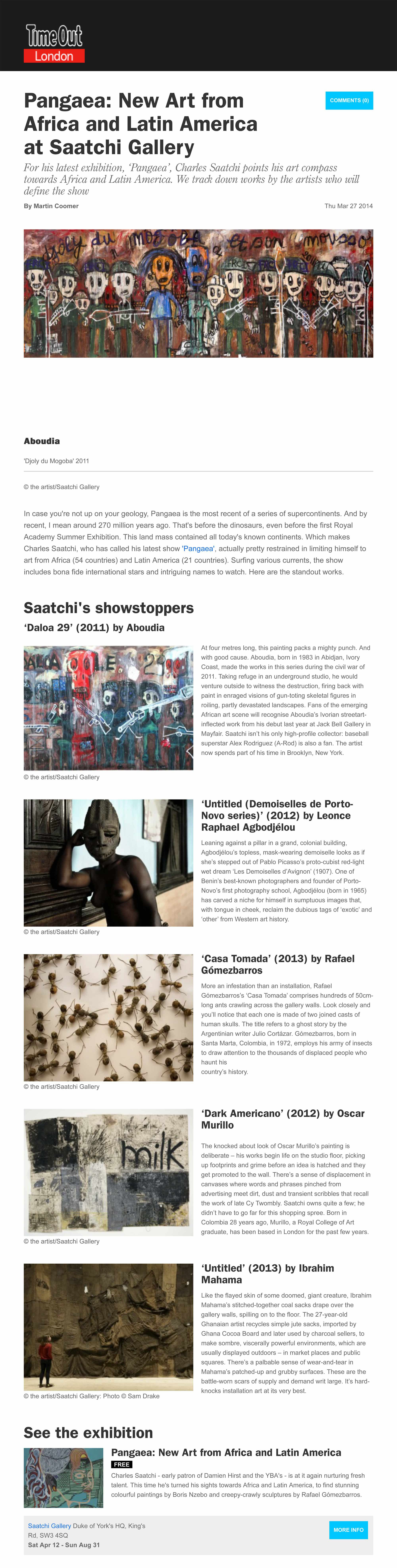 'Pangaea: New Art from Africa and Latin America at Saatchi Gallery', Timeout, 27 March 2014
