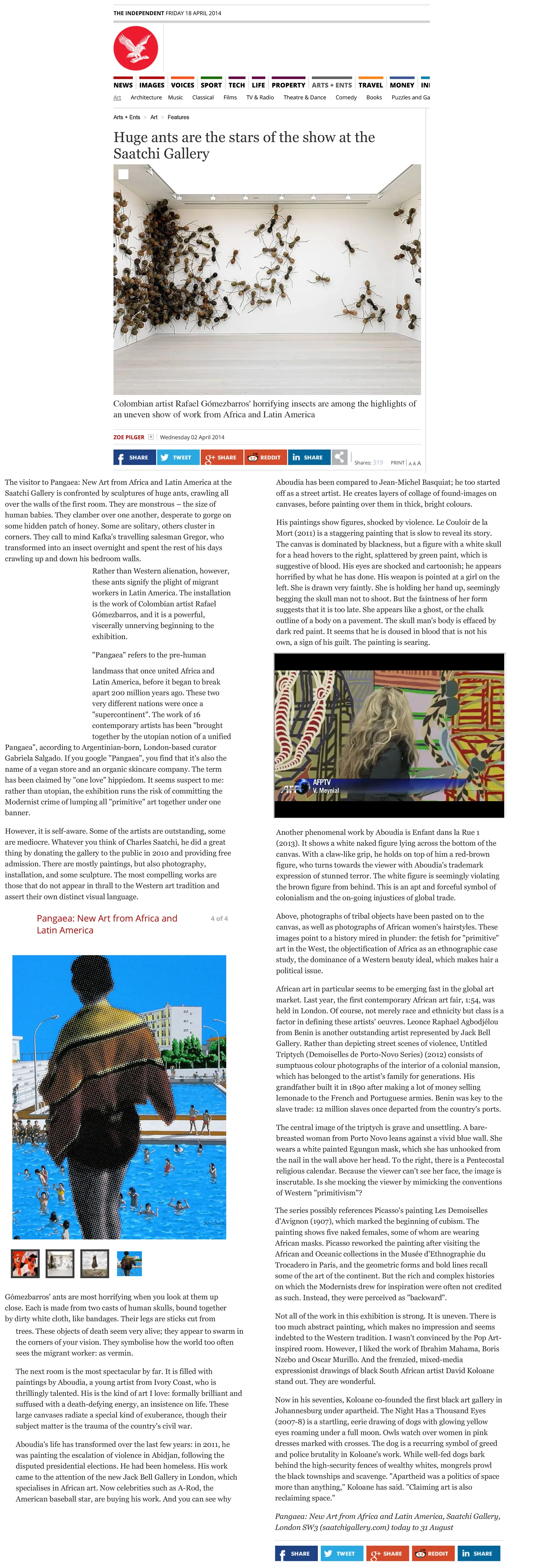 'Pangaea: New Art from Africa and Latin America', Zoe Pilger, 18 April 2014