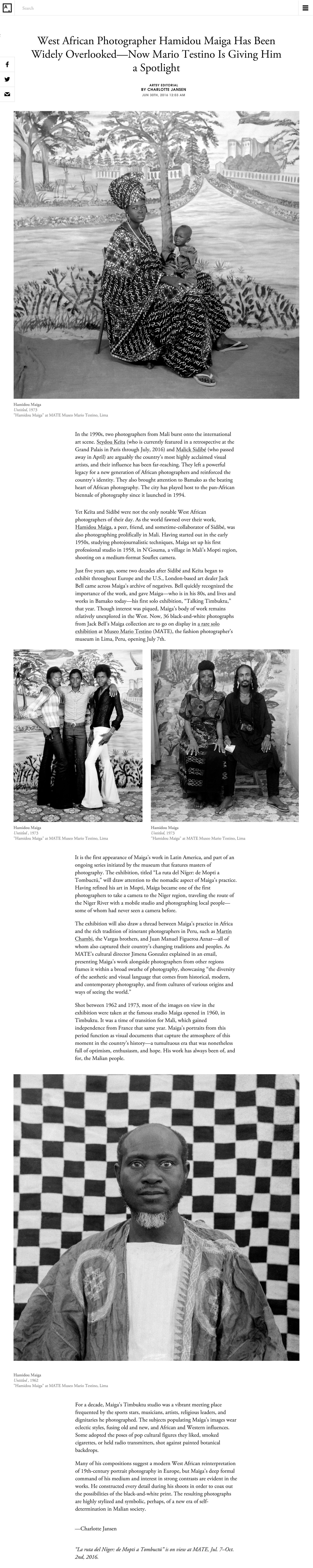 'Mario Testino Spotlights the Overlooked West African Photographer Hamidou Maiga', Charlotte Jansen, 30 June 2016